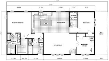 26 x 48 2 beds, 2 baths, 2 car attached garage on a large lot in a country setting..